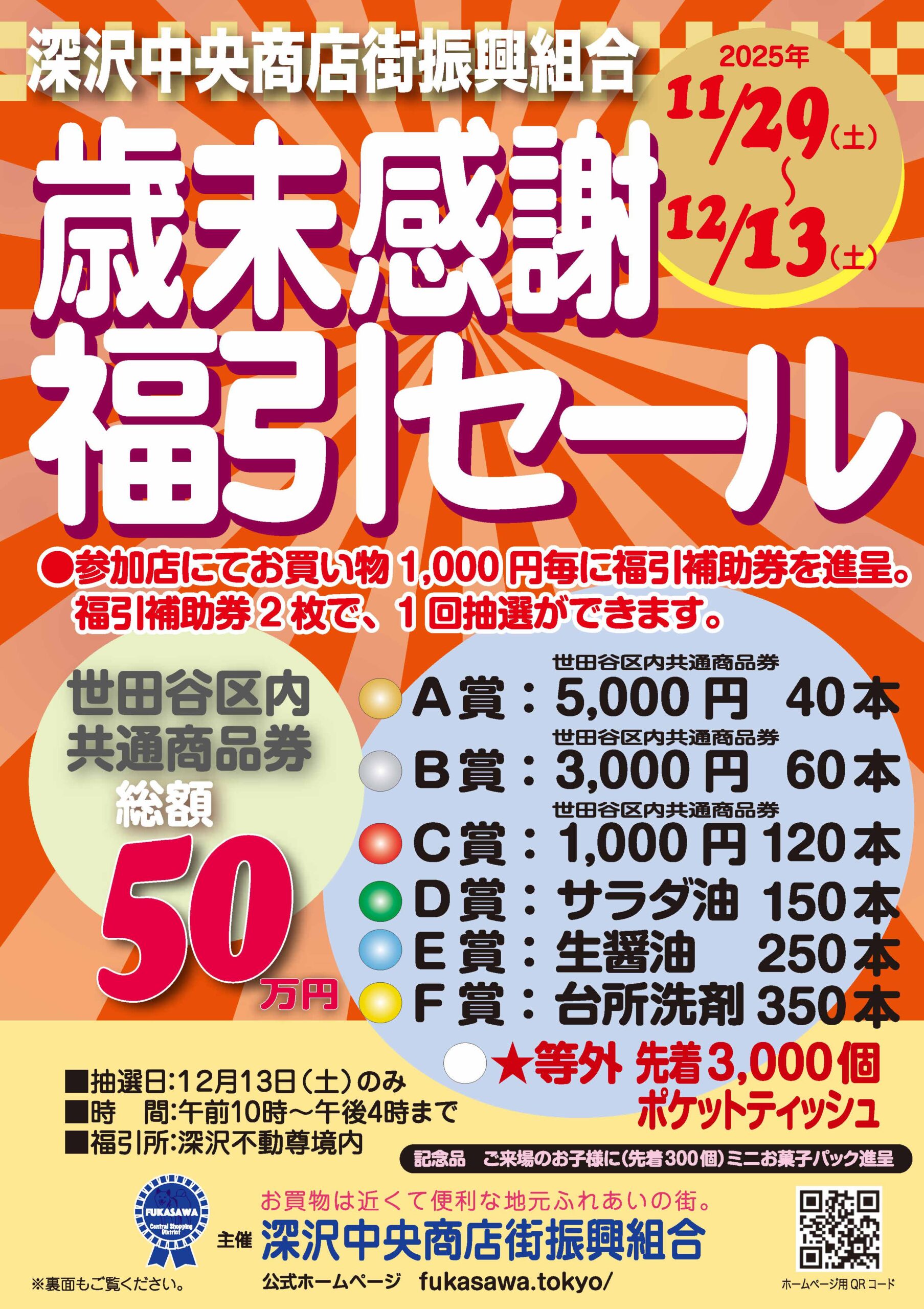 深沢中央商店街振興組合では、11月29日(土)より12月13日(土)まで、「歳末感謝福引セール」を実施します!